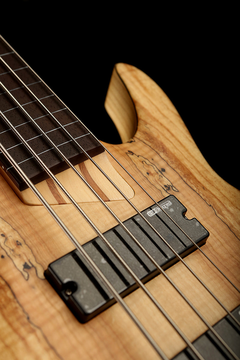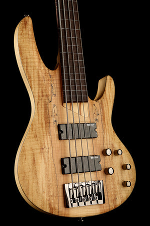 With its unique coloration and grain pattern highlights, spalted maple is a great look for a bass that stands out from the crowd. The B-205SM FL is an excellent choice in an affordable fretless 5-string bass that includes an ash body with a spalted maple top in Natural Satin finish, along with an extra thin U-shaped 5-piece maple/jatoba neck for excellent playing feel, and 24 clearly marked fret indicators to quickly hit the pitch you want. You also get passive ESP Designed SB-5 pickups, along with an active ABQ-3 EQ, and good-looking black nickel hardware. Available in Natural Satin finish.