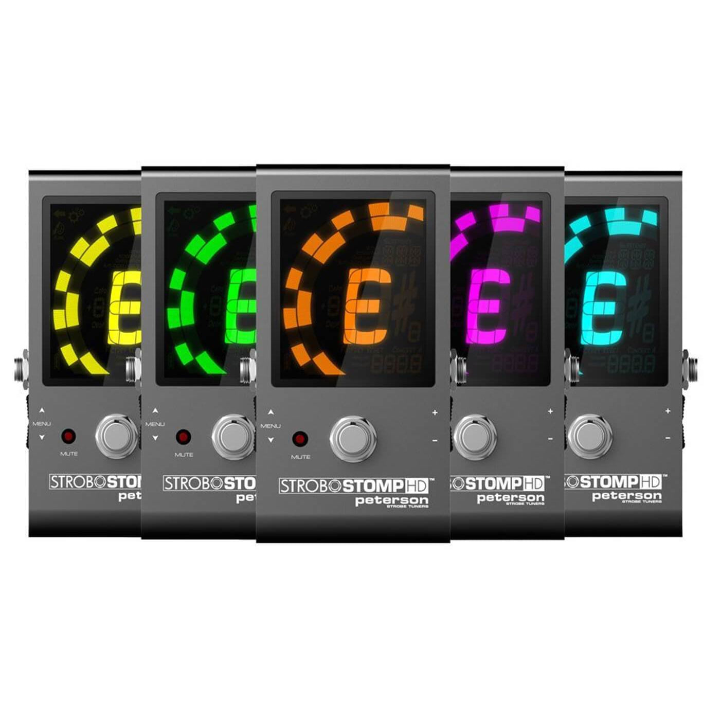 Featuring the largest tuning display Peterson Tuners has ever incorporated into one of their pedal tuners, the StroboStomp HD boasts a high-definition, LCD screen that incorporates a variable color LED backlight. The user-selectable colors can be used to personalize the tuner or to increase display viewing quality in different levels of ambient lighting depending on the usage environment. The vibrant screen colors can also be assigned to stock or user presets to significantly reduce menu navigation time and increase on-stage tuning confidence at the gig.