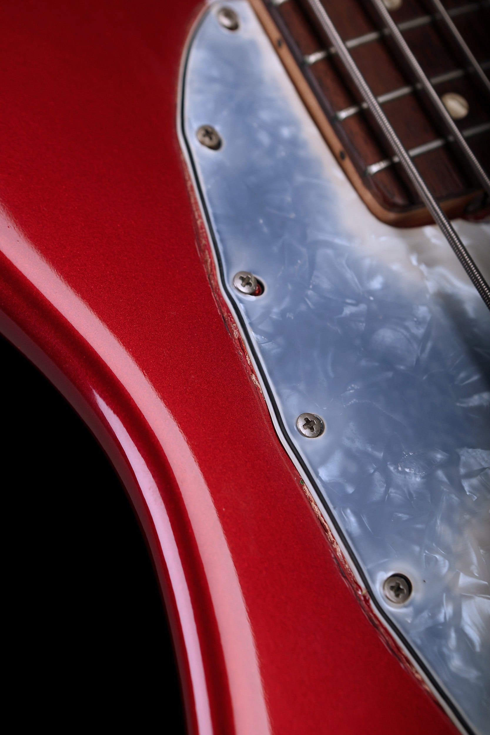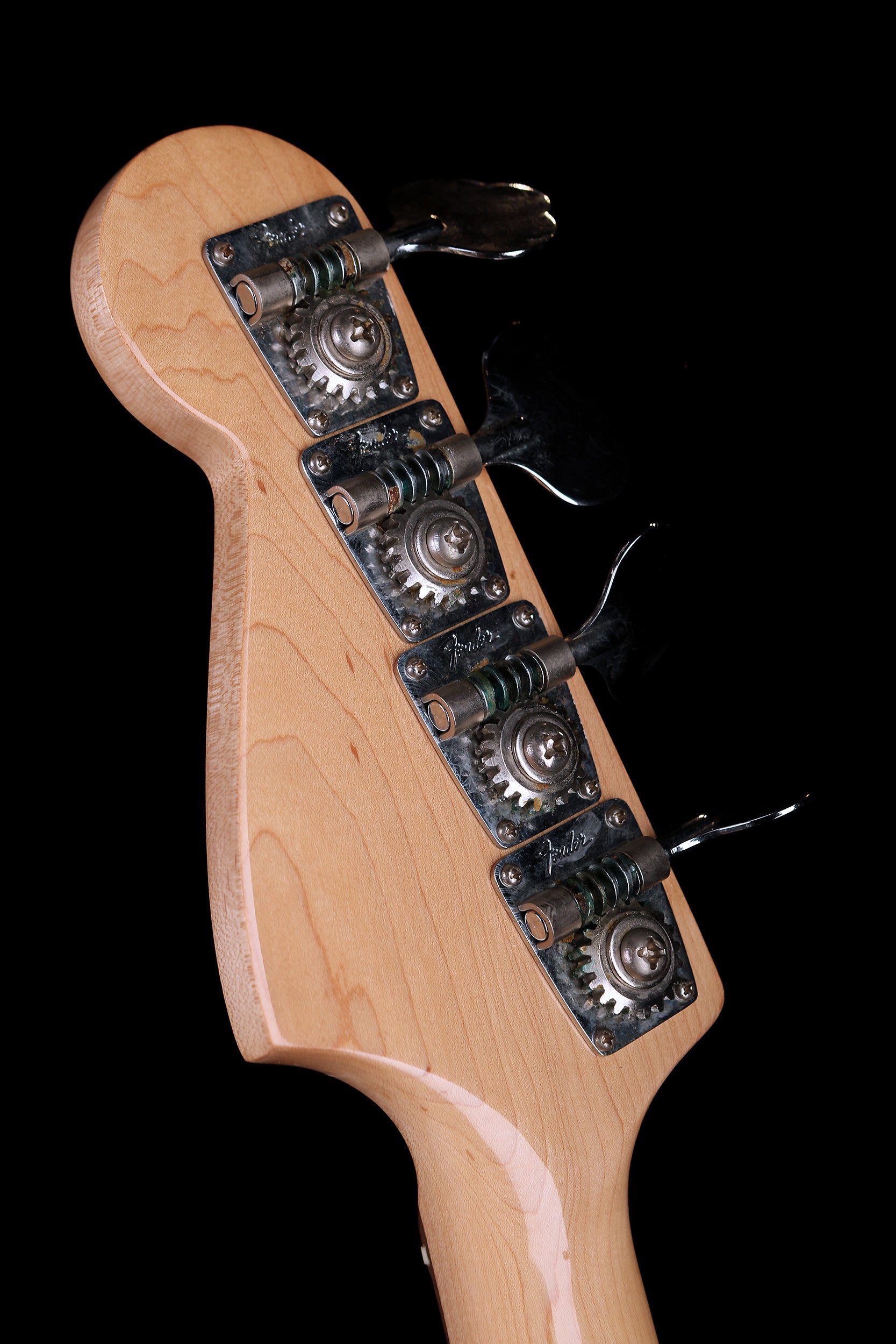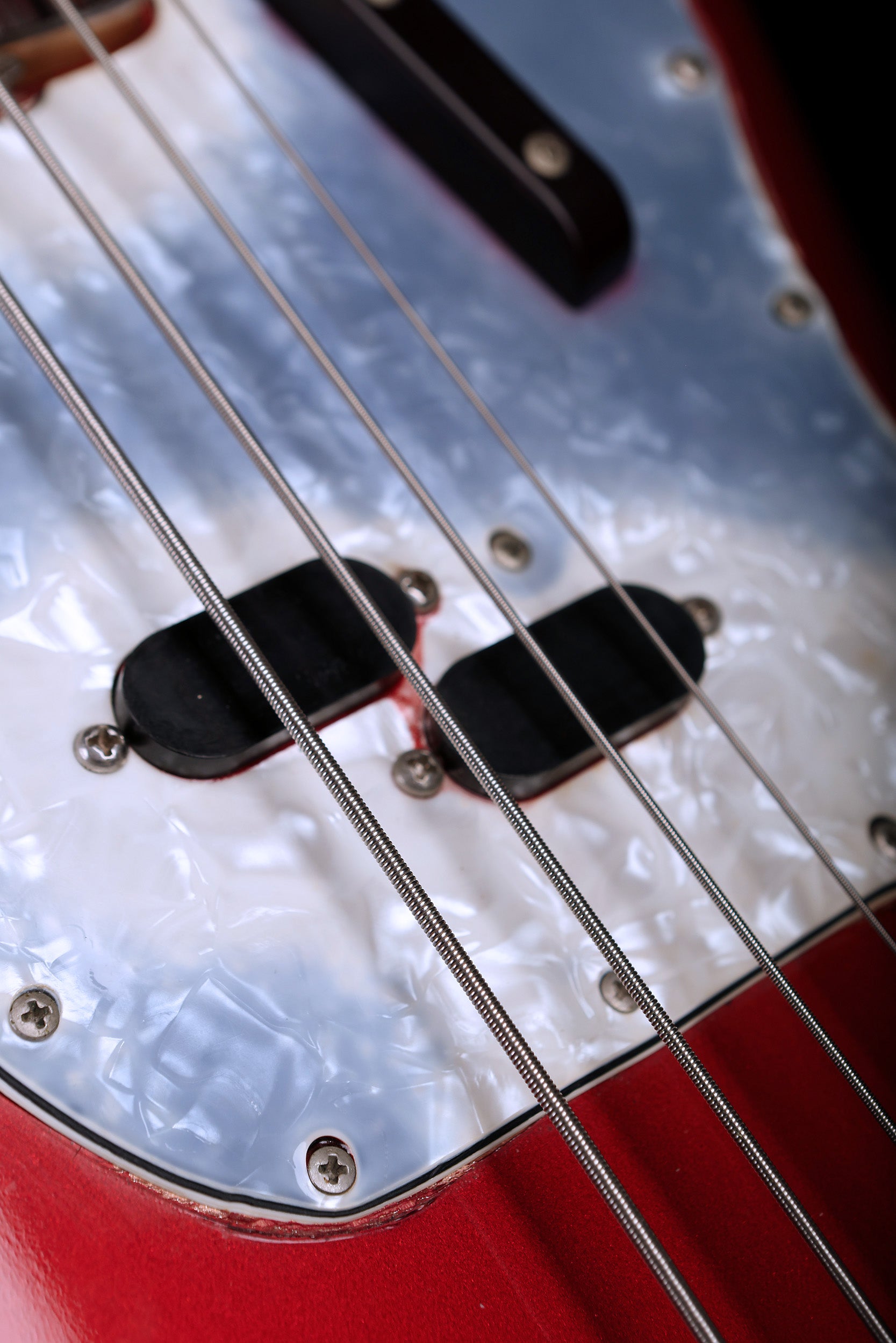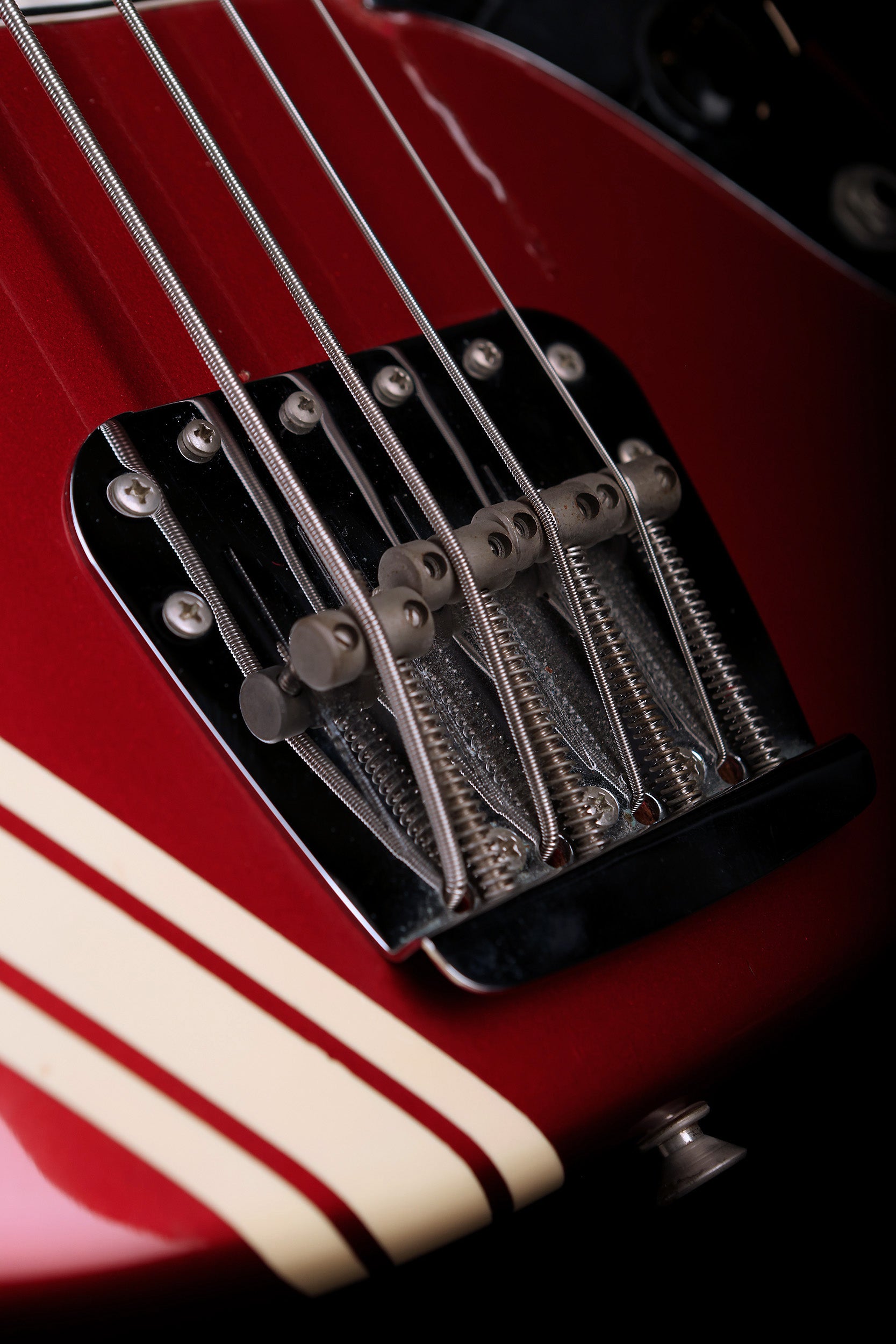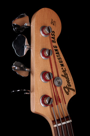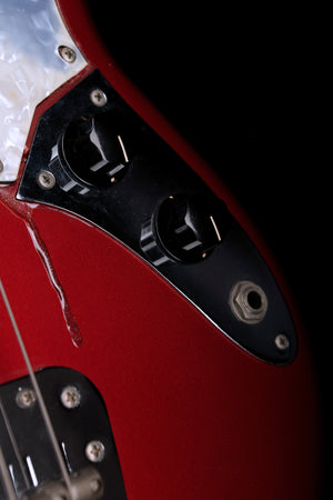 Original competition stripe Mustangs are highly desirable and do not come up for sale very often. This bass is completely original with a 1971 neck stamp and 1967 pot date codes. It is light and plays great. The pickguard has 'gassed off' after years of use which has caused it to fade and shrink so extra screws have been added in the past. This doesn't affect the playability at all and it sounds great. A replacement pickguard can be sourced if you prefer and the original can be kept with the bass. Non original case