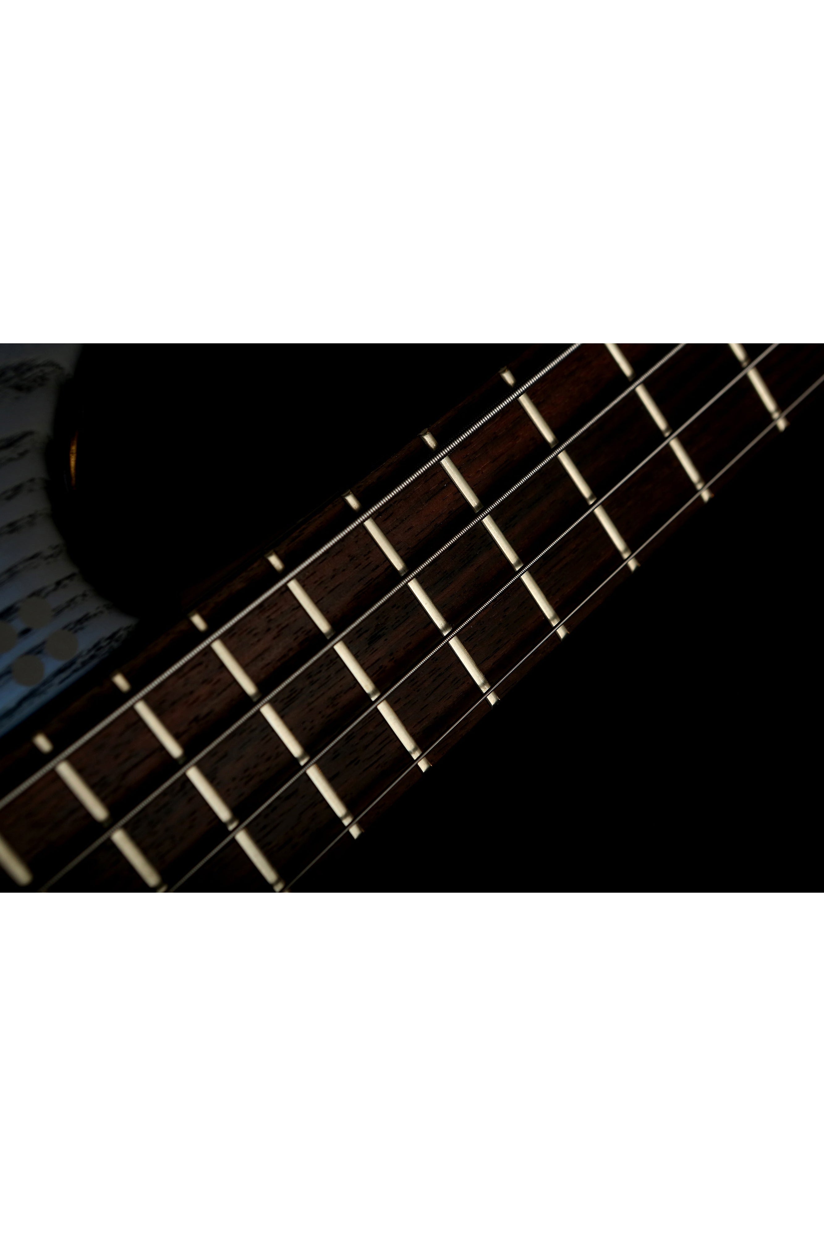 Slim profile neck measuring 40mm at the nut, 47 mm at the 12th, satin finish maple with Pau Ferro fretboard fretboard. Black Hardware