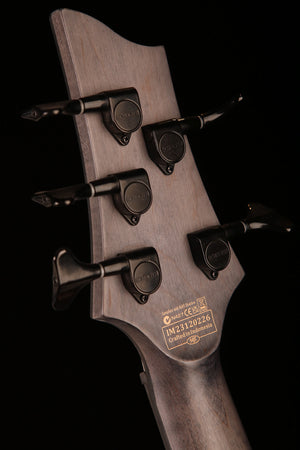 Tuners: Schecter Fretboard Material: Rosewood Neck Material: Maple w/ Carbon Fiber Reinforcement Rods Inlays: Pearloid Lines Scale: 35" (889mm) Neck Shape: Thin "C" Thickness: 1st Fret- .787" (20MM), 12th Fret- .866" (22MM) Frets: 24 Jumbo Fretboard Radius: 16" (406MM) Nut: Graph Tech XL Black Tusq Nut Width: 1.77" (45mm) Truss Rod: 2-Way Adjustable Rod w/ Heel Access 5/32" (4mm) Allen Nut