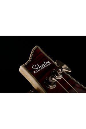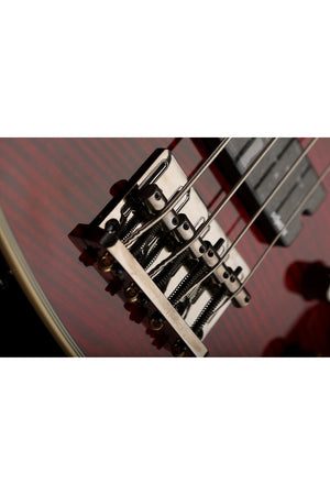 Deliver the Rock with the Schecter Omen Extreme-4 electric bass guitar. The beautiful flame maple top and black chrome hardware adorn a mahogany body and maple neck that's topped with a rosewood fretboard. Loaded with a pair of Schecter Diamond Bass pickups and the 2-band active EQ; this setup lets you conjure an array of tones from mellow to super aggressive.