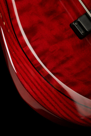 The 4-ply laminated body is crafted from plies of figured maple, ash, alder, and maple. This design produces tight and rich resonation over the instrument's entire range. A slap cut on the body offers greater string acces all the way up the neck.